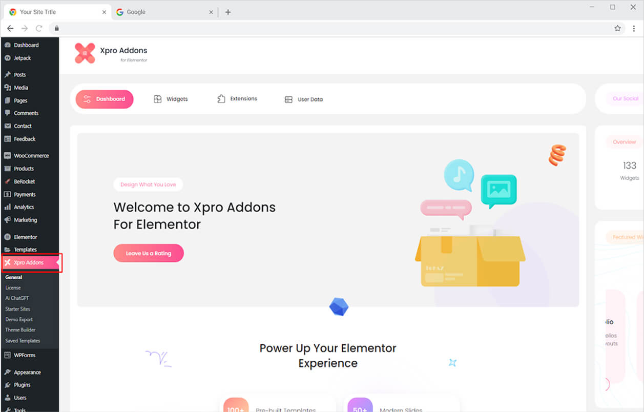 Click on the Xpro Addons option available on the WordPress Dashboard Menu.