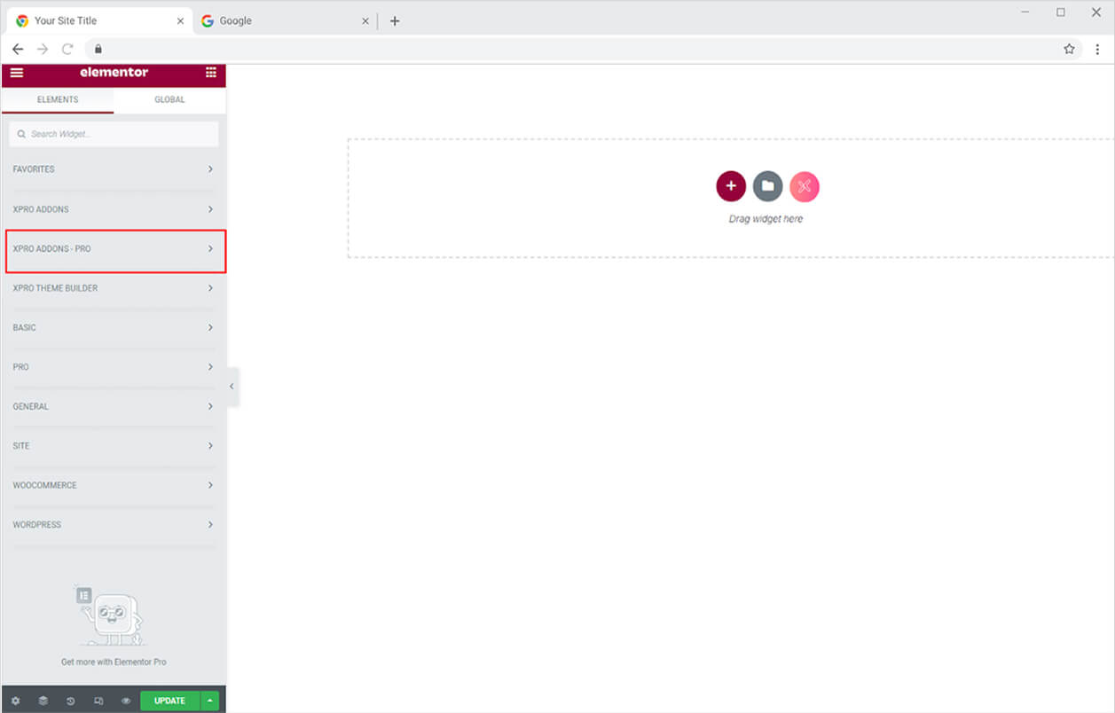 Click on the Xpro Addons – Pro section available in the Elementor Editor.