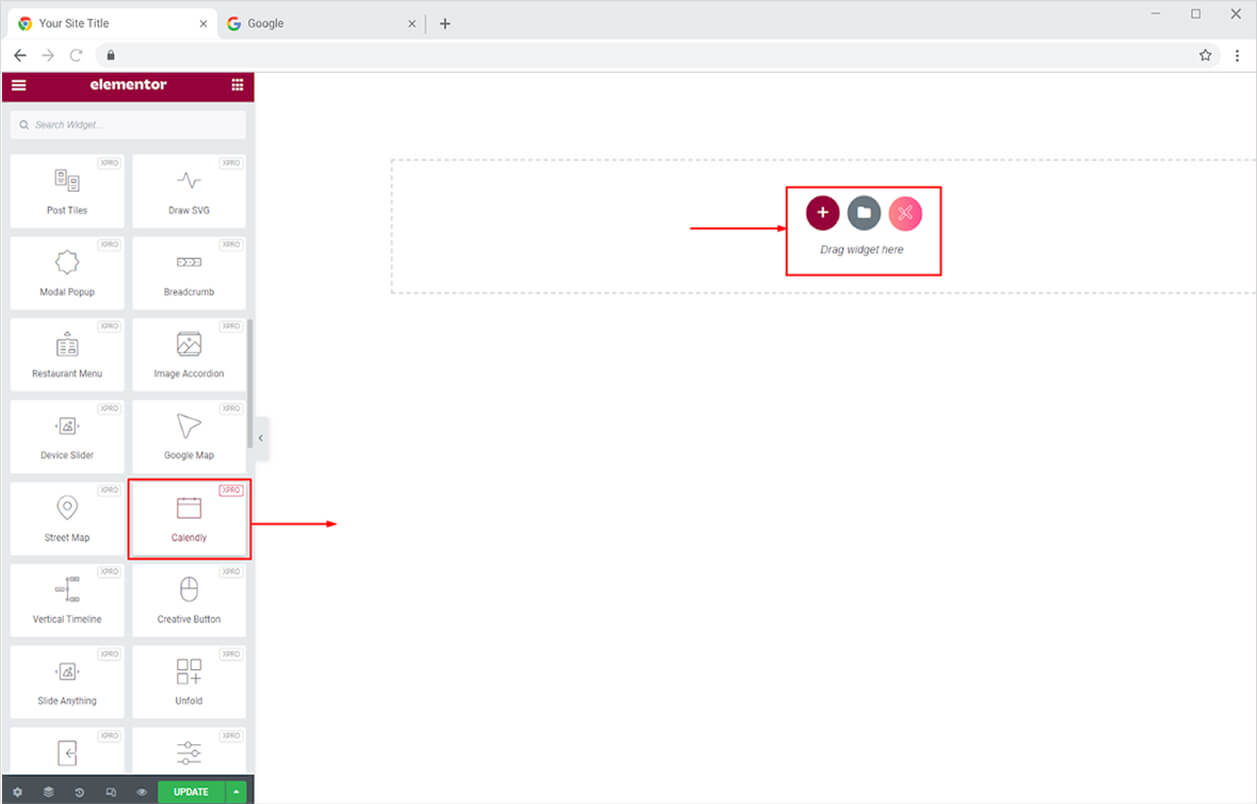From the Xpro Addons – Pro section, find and simply drag’n’drop the Calendly widget on your desired page location.