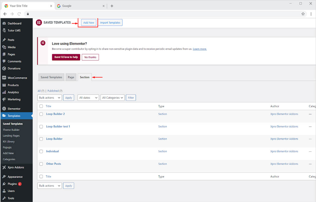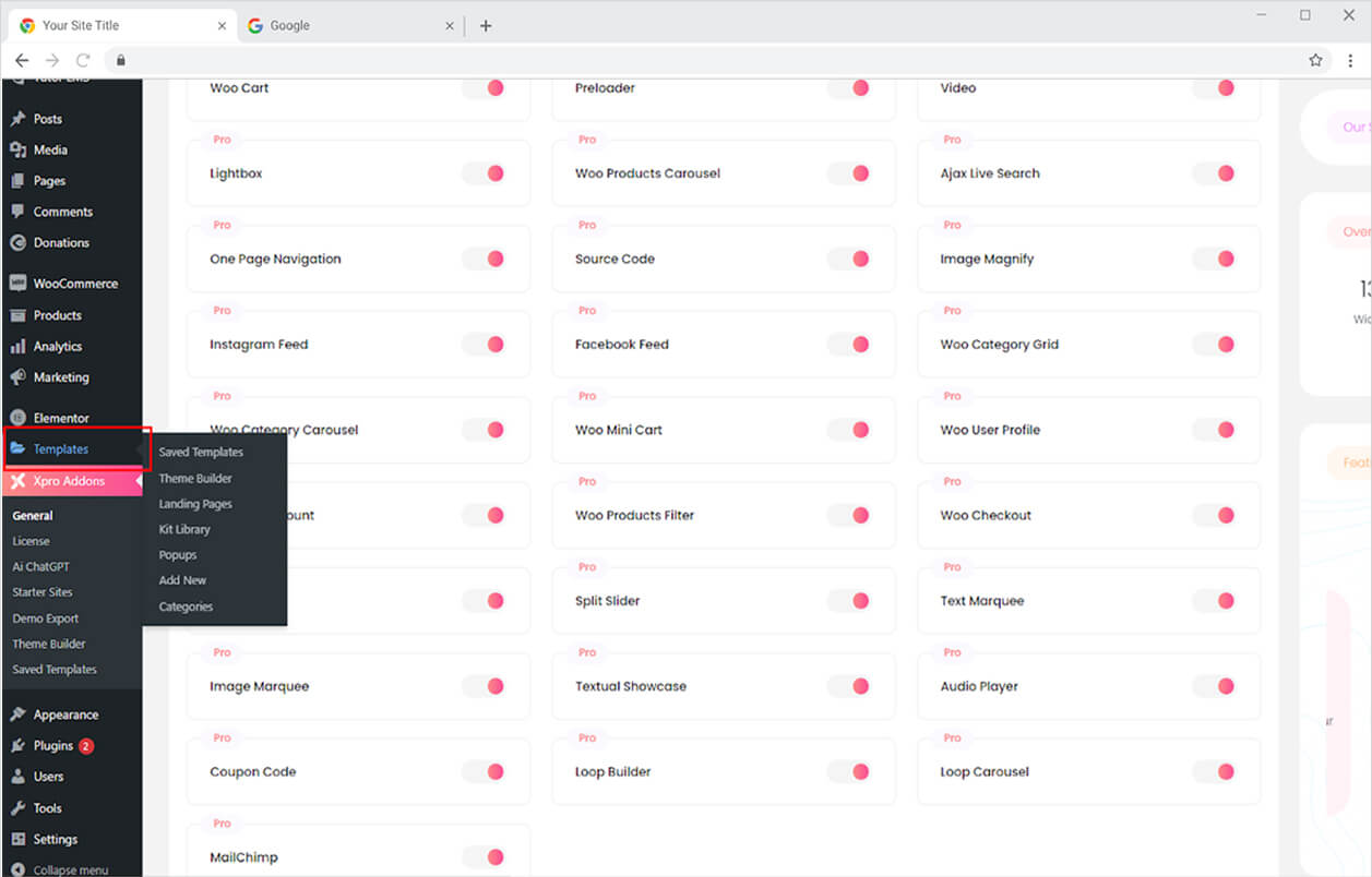 Click on the Xpro Addons option available on the WordPress Dashboard Menu.