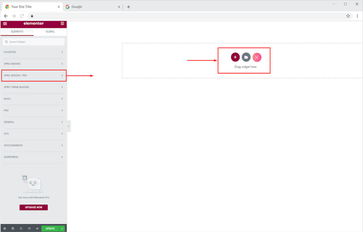 Open the Elementor page where you want to add the widget and click on Xpro Addons-Pro.