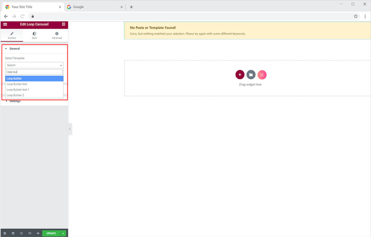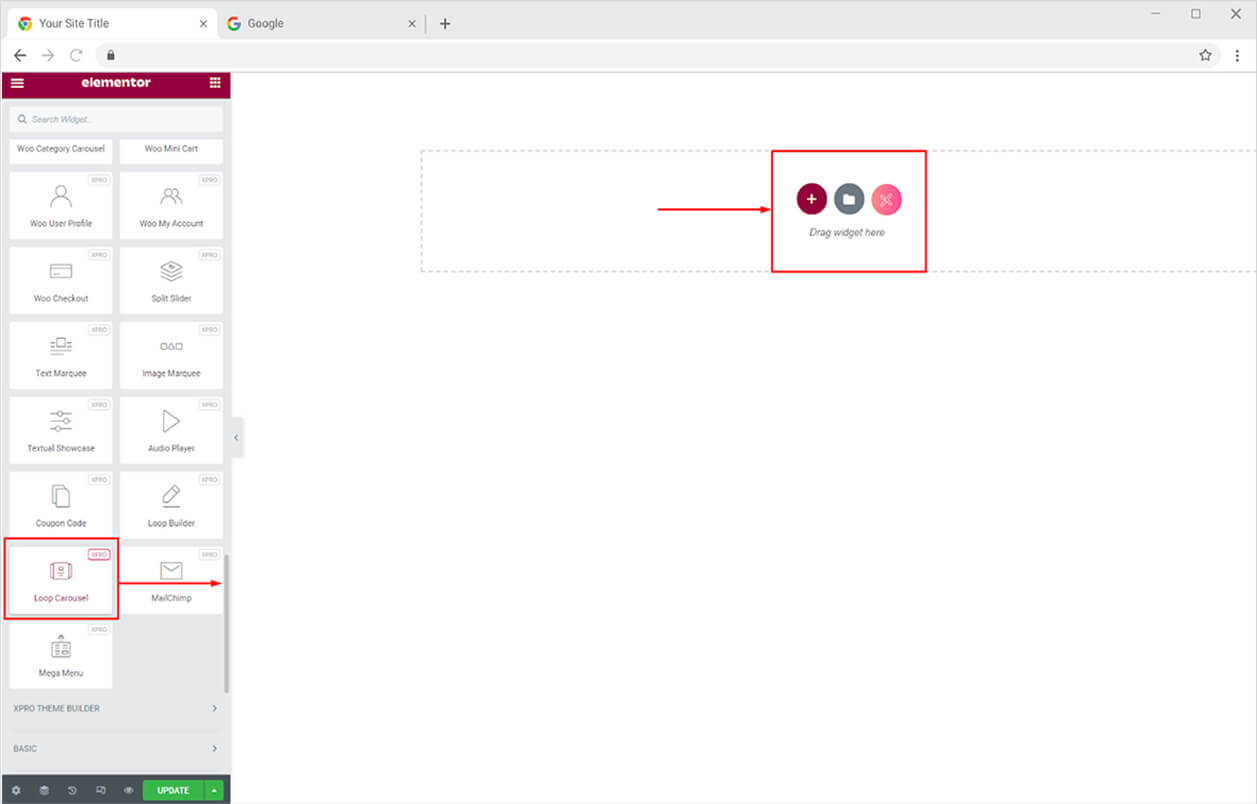 Search and locate the Loop Carousel widget and drag’n’drop it to your desired page location.