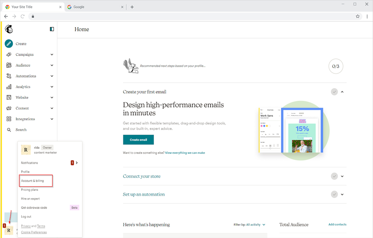 - Set up a Mailchimp account