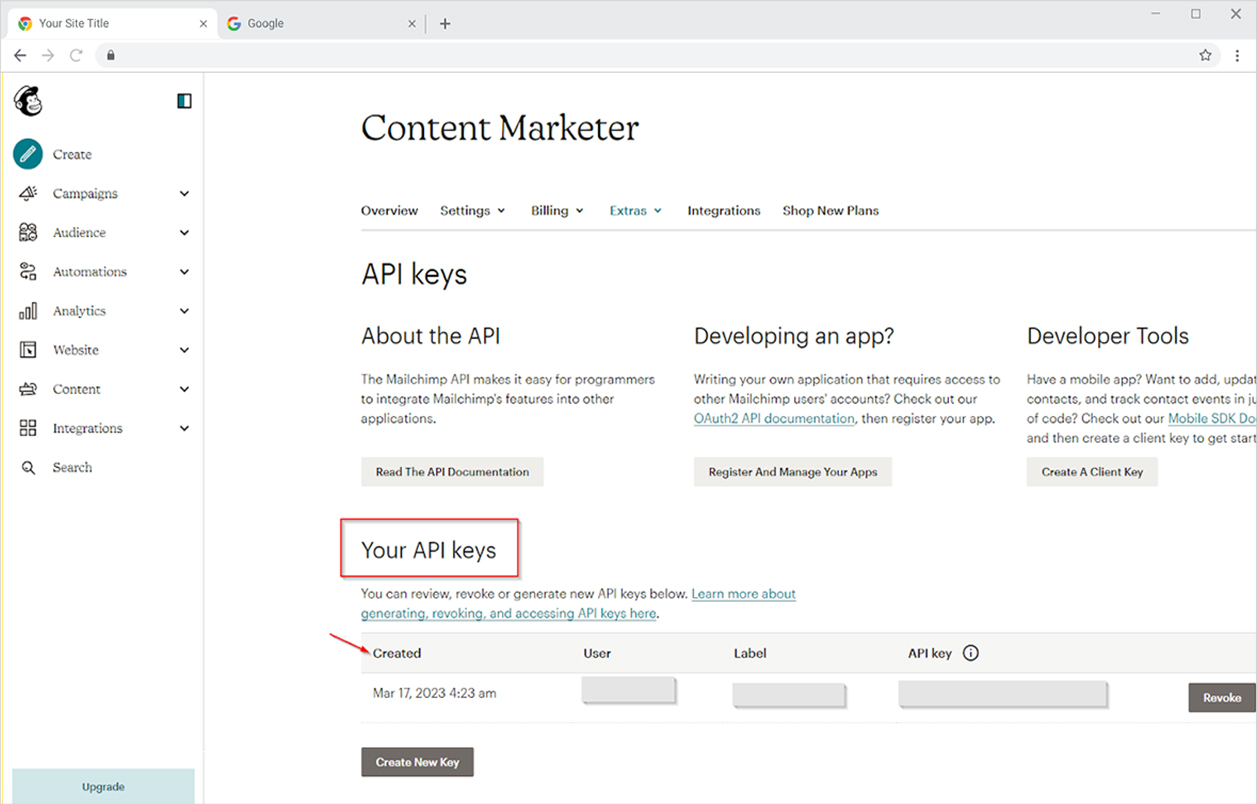 You can view your newly generated API key under “Your API key” section.