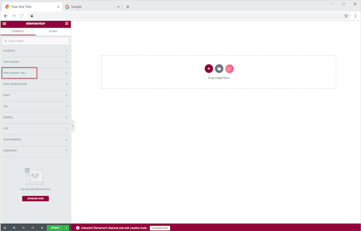 Click on the Xpro Addons section available in the Elementor Editor.