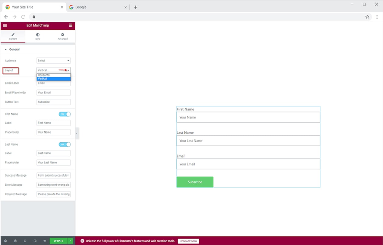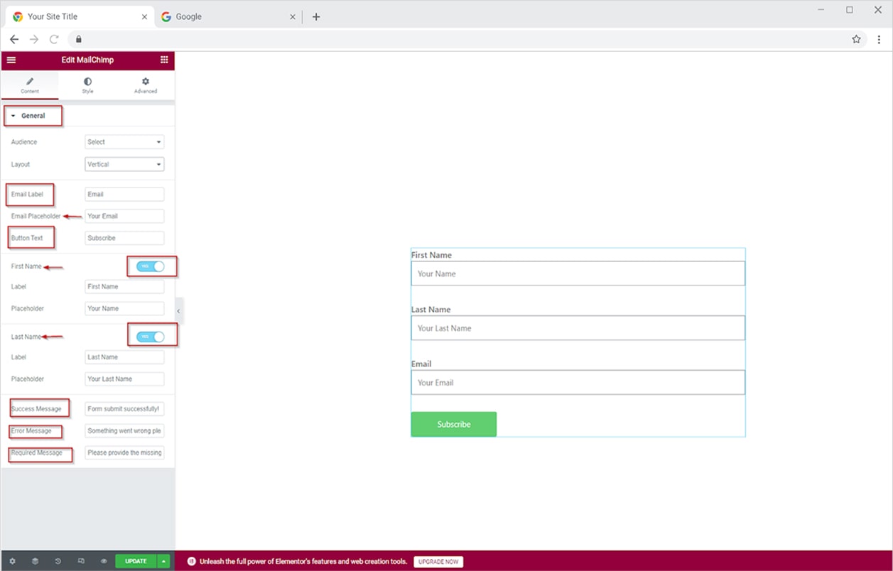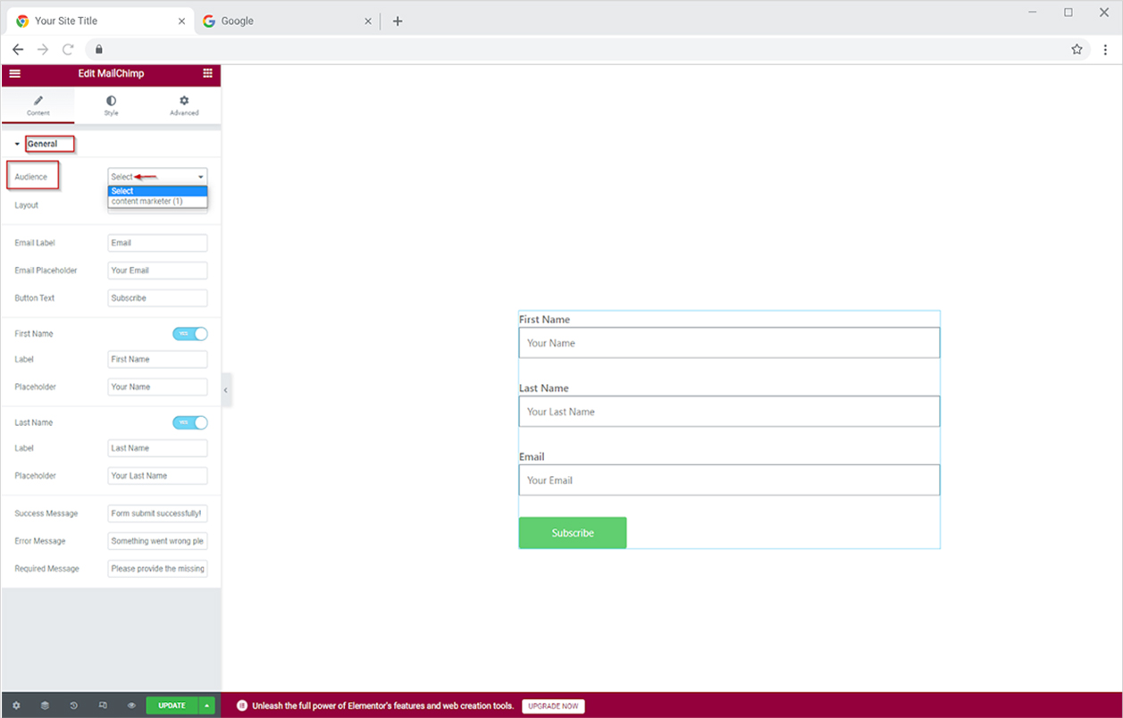 How to use Mailchimp form widget for Elementor