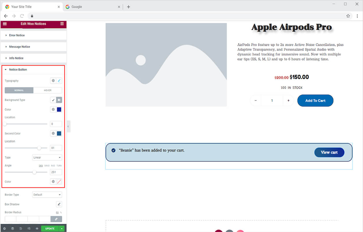 Add Elementor Woo Notice to the page where you want it to appear. You can put this widget only once on a page. This Pro WooCommerce widget is actually very easy to use and allows you to create an appealing notification box with little effort.