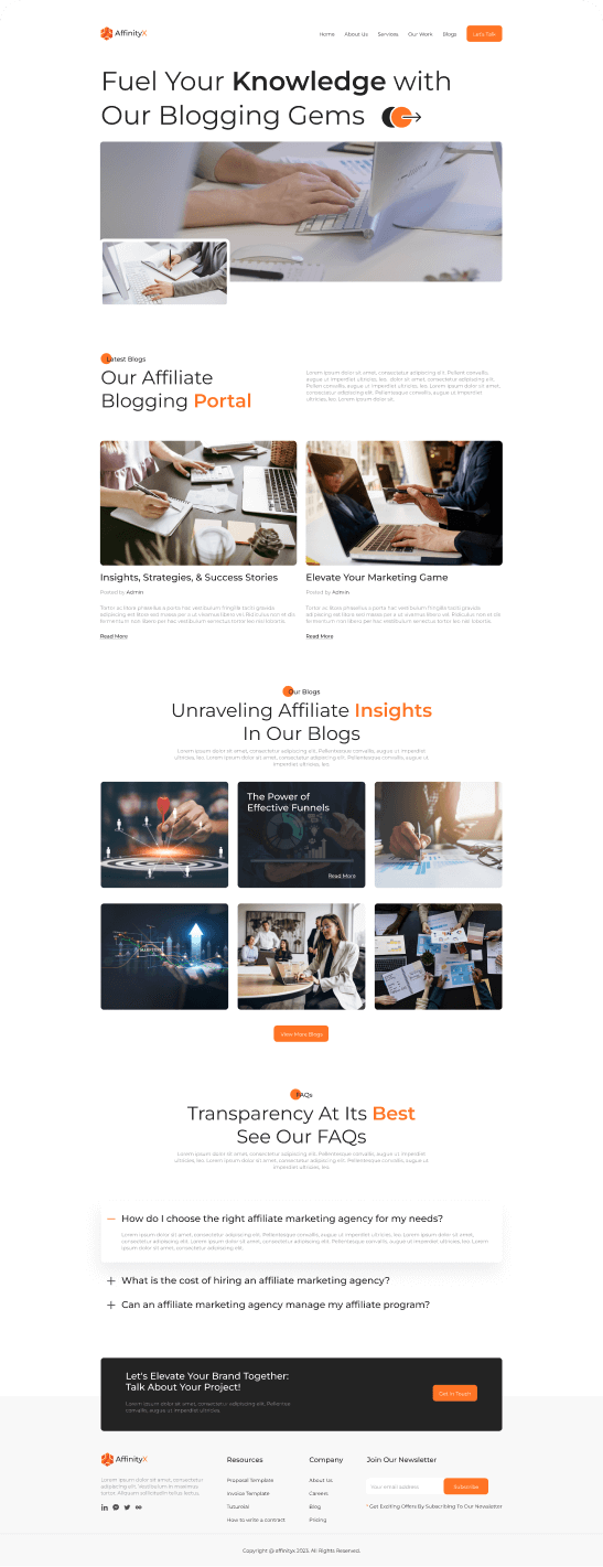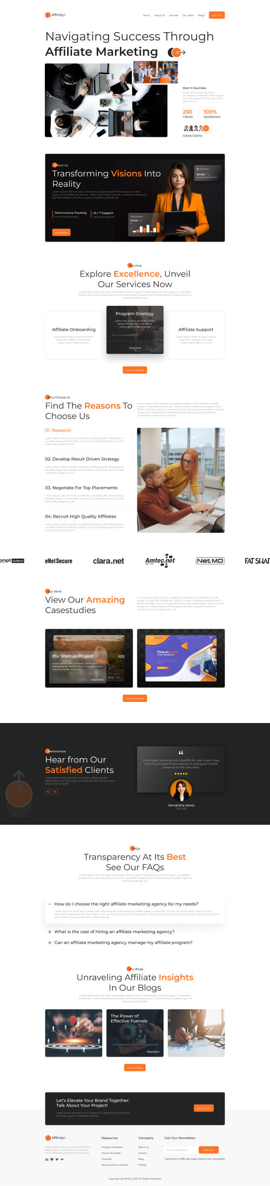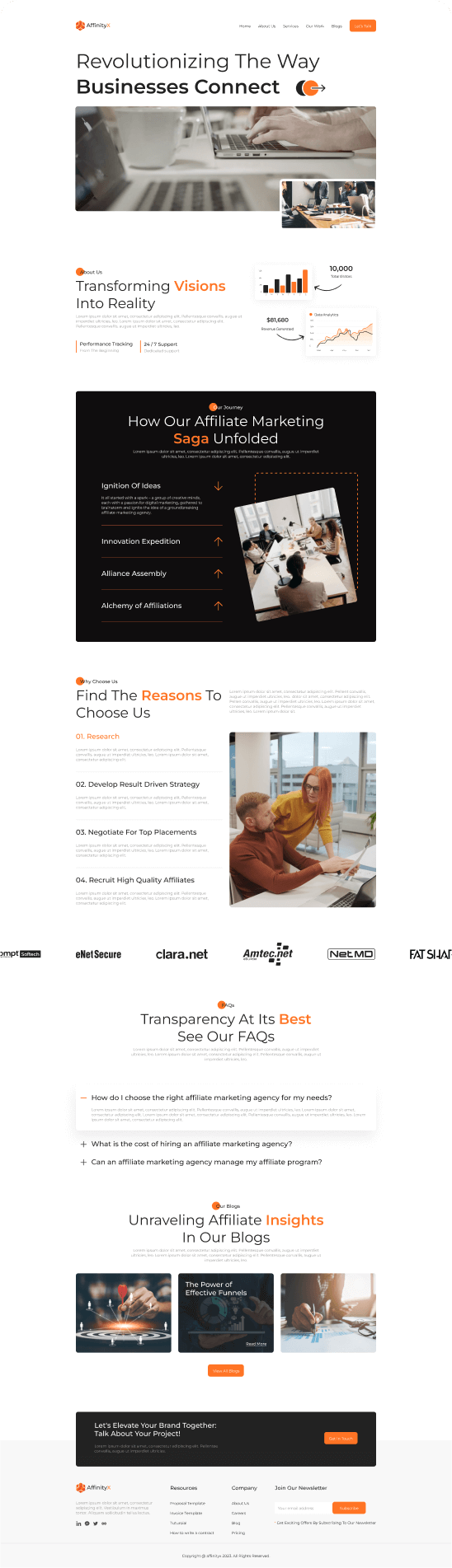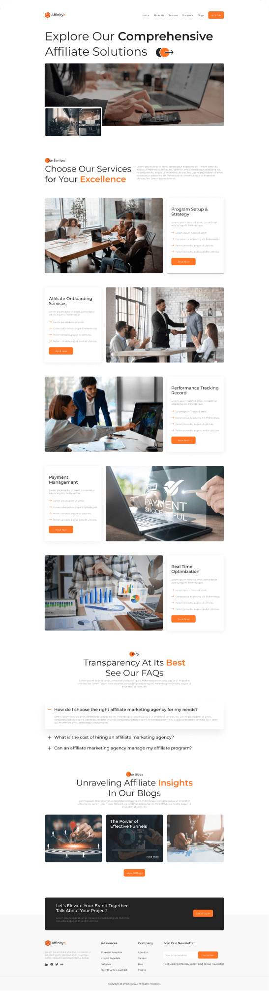 Unlike generic templates, AffinityX is designed with your industry in mind, offering layouts and features that speak directly to your audience.Experience the difference a world-class template can make. AffinityX sets a new standard for affiliate marketing agency websites.