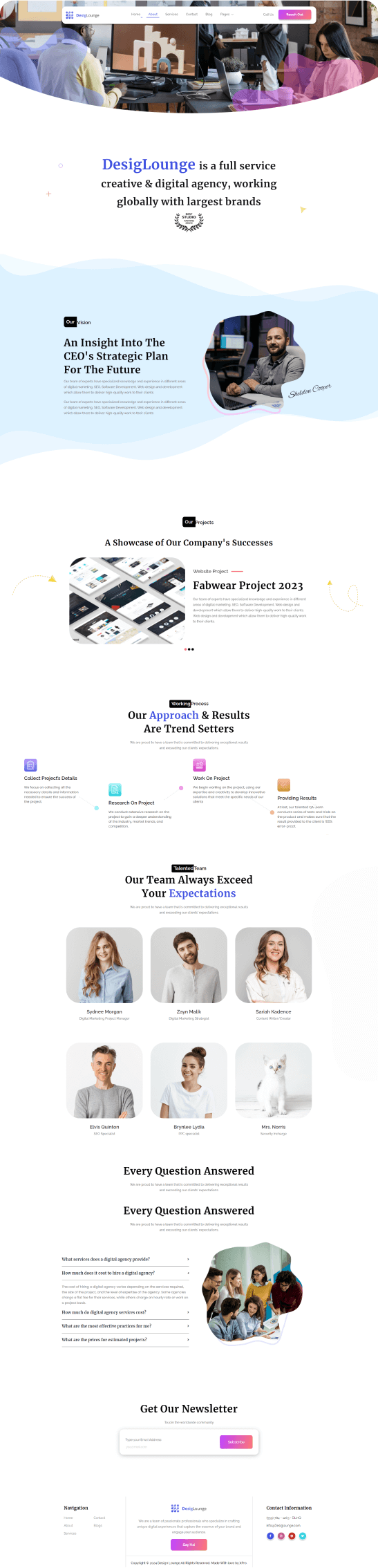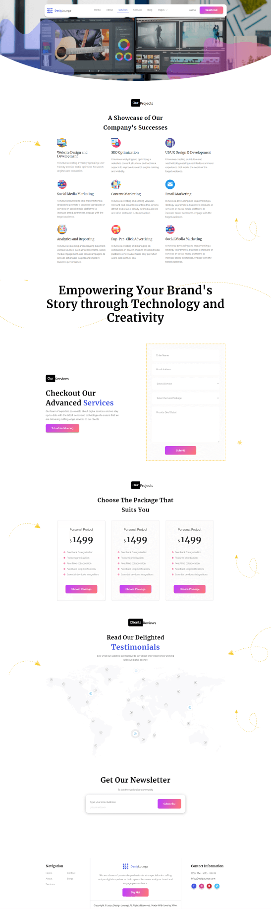 Start your digital marketing journey Desiglounge template, designed to help new and growing agencies build a strong online presence. Showcase your expertise, attract new clients, and drive meaningful results.