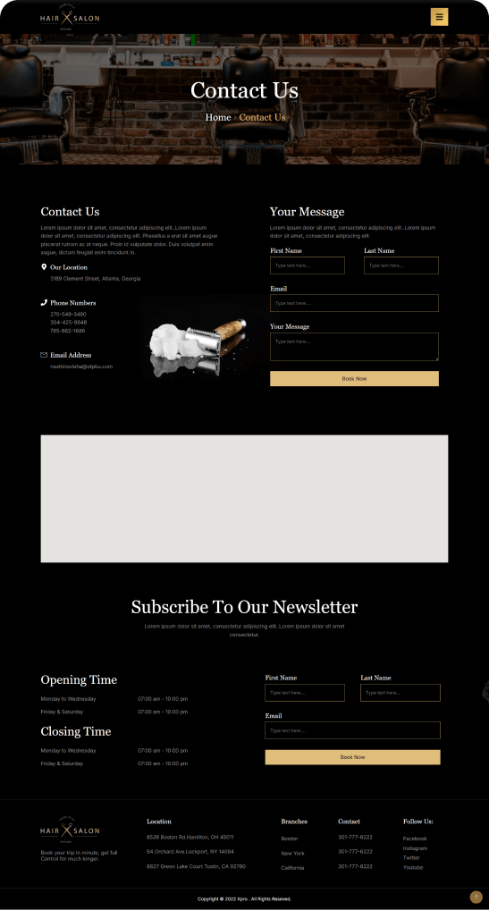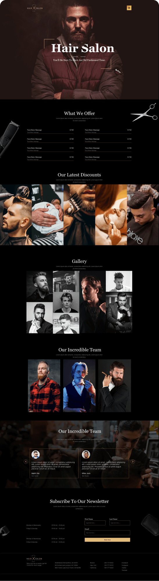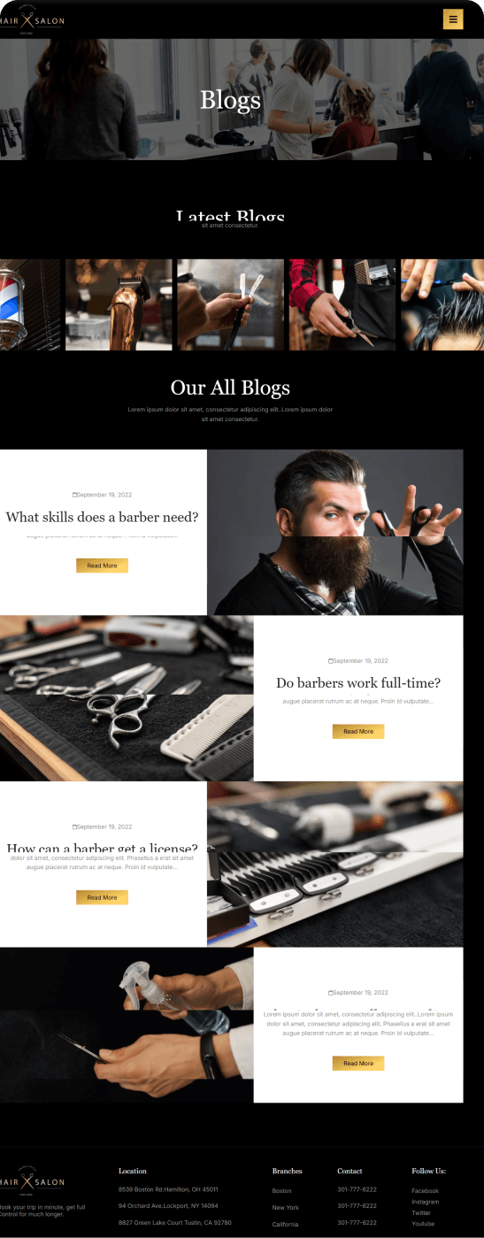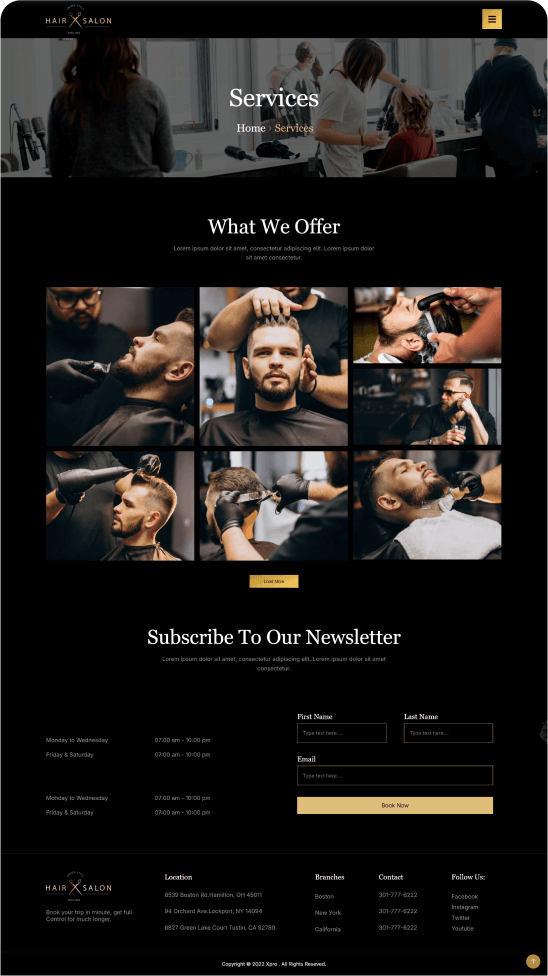 A pre-designed framework for creating an online presence for your hair salon. This template typically focus on creating a visually appealing and user-friendly platform to showcase services, attract new clients, and manage appointments.