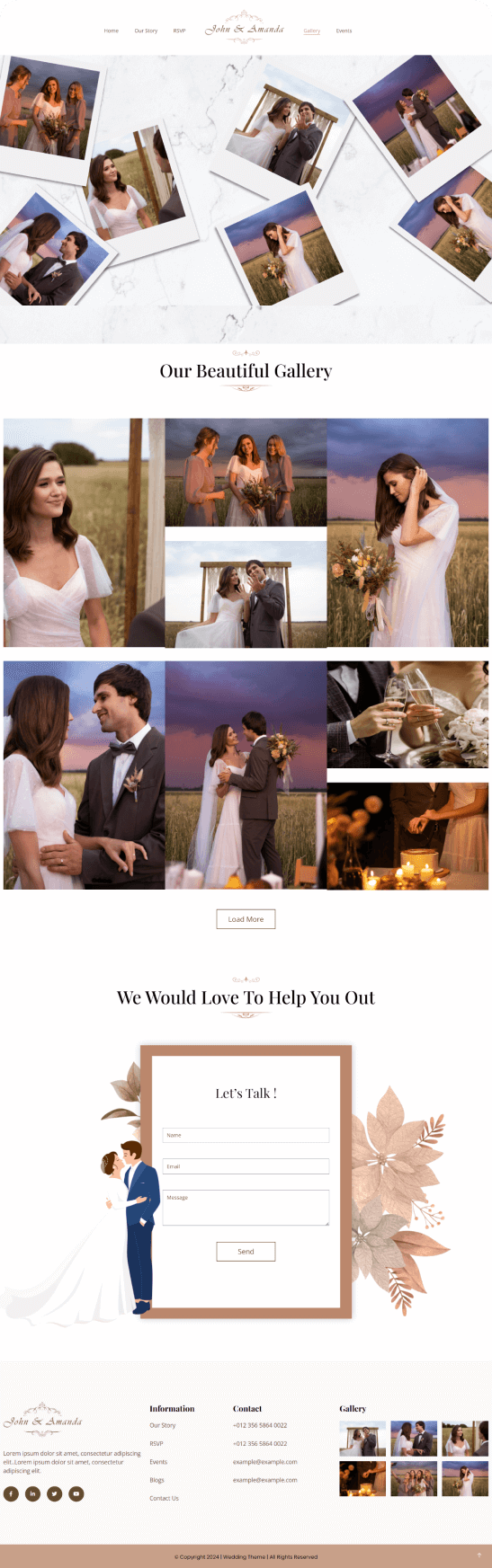 Showcase your wedding photography talent with our stunning website templates. Impress clients and book more weddings with beautifully designed, mobile-friendly layouts. Easy customization, SEO optimization, and a seamless user experience.